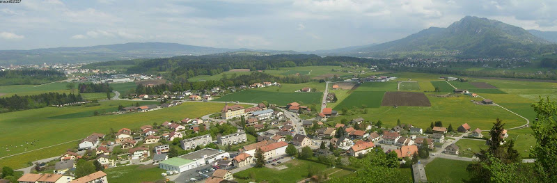 6. View of the entrance to the town from inside the town. Towering over the town in the background is the summit of Moleson (2,002m).